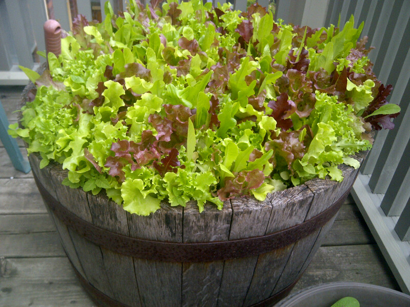 For the next month, your barrel grew like a Chia Pet, putting at least a dozen good-sized salads on the table. The fresh-picked lettuce with augmented with chives and onion greens grown in smaller pots.