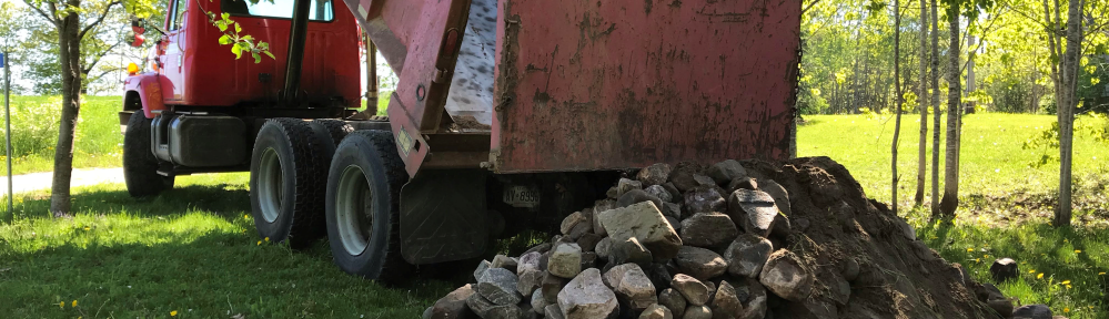 I visited Brent at the pit and we agreed on a nice pile of small and mid-size stone, as well as the price — $200 dollars. The next morning, as I watched a pair of bluebirds build their nest in a box near our cottage, I heard Brent’s large dump-truck chugging down our small cottage lane.