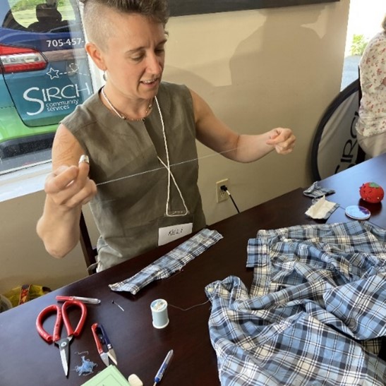 Thirty years later, she operates the Haliburton Clothing Co, drafting, cutting and sewing women’s and men’s fashions. She also brings her sewing talents to the Haliburton SIRCH Repair Café, giving a new lease on life to garments that might otherwise be tossed away. In 2024, Keli and other volunteer fixers at SIRCH repaired more than 500 items ranging from electronics to small appliances, clothing, jewelry and more.