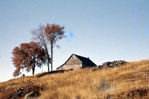The barn was in good shape, and I played in there as a kid. There were piles of hay and straw and ropes to haul it in. There was an old cutter in there — a horse-drawn sled for trips to town in winter. And the body of a Ford Model A car. My dad didn’t need the barn, so he had it torn down and kept the utility garage nearby. You can still see the stone foundation of that barn next to one of the Dahl Forest trails.