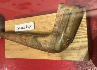 Stone pipe from Algonquin culture found by Peter Dahl near Dahl Forest. It is part of an exhibit of indigenous artifacts at the Haliburton’s Museum. The ridges in foreground were likely once decorated with brightly coloured inlays, and the bowl of the pipe may have had a wooden figure attached, such as a bird’s head. The museum offers a report by David Beaucage Johnson on the history of indigenous settlement in Haliburton County. You can find it at this link: //database.ulinks.ca/items/show/4842