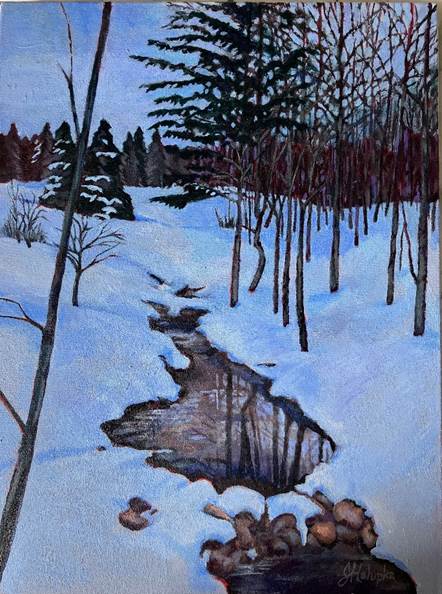 Special thanks to Jacquie for her interpretation of Kinross Creek. For more information about her art, please visit Jacquie’s website at: halupkaart.com or jhalupka on Instagram.