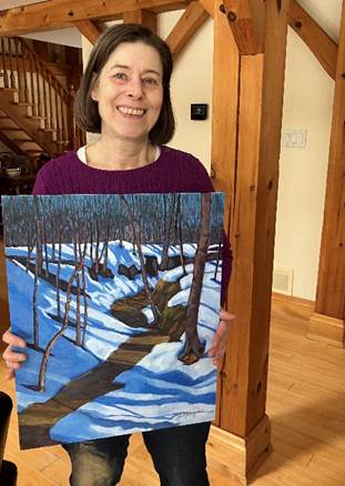 Artist Jacqueline Halupka interpreted this magic moment at Kinross Creek in a painting, using acrylic on canvas. After a career in information management, Jacquie has experienced an artistic homecoming in retirement – picking up her brush and paints to interpret landscapes in the Haliburton area.